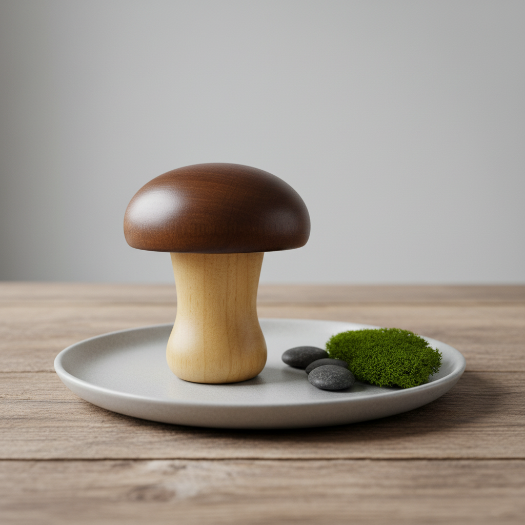 Each mushroom is expertly carved from fine beech wood, polished by hand to create a smooth, natural finish that highlights the wood’s warm grain.